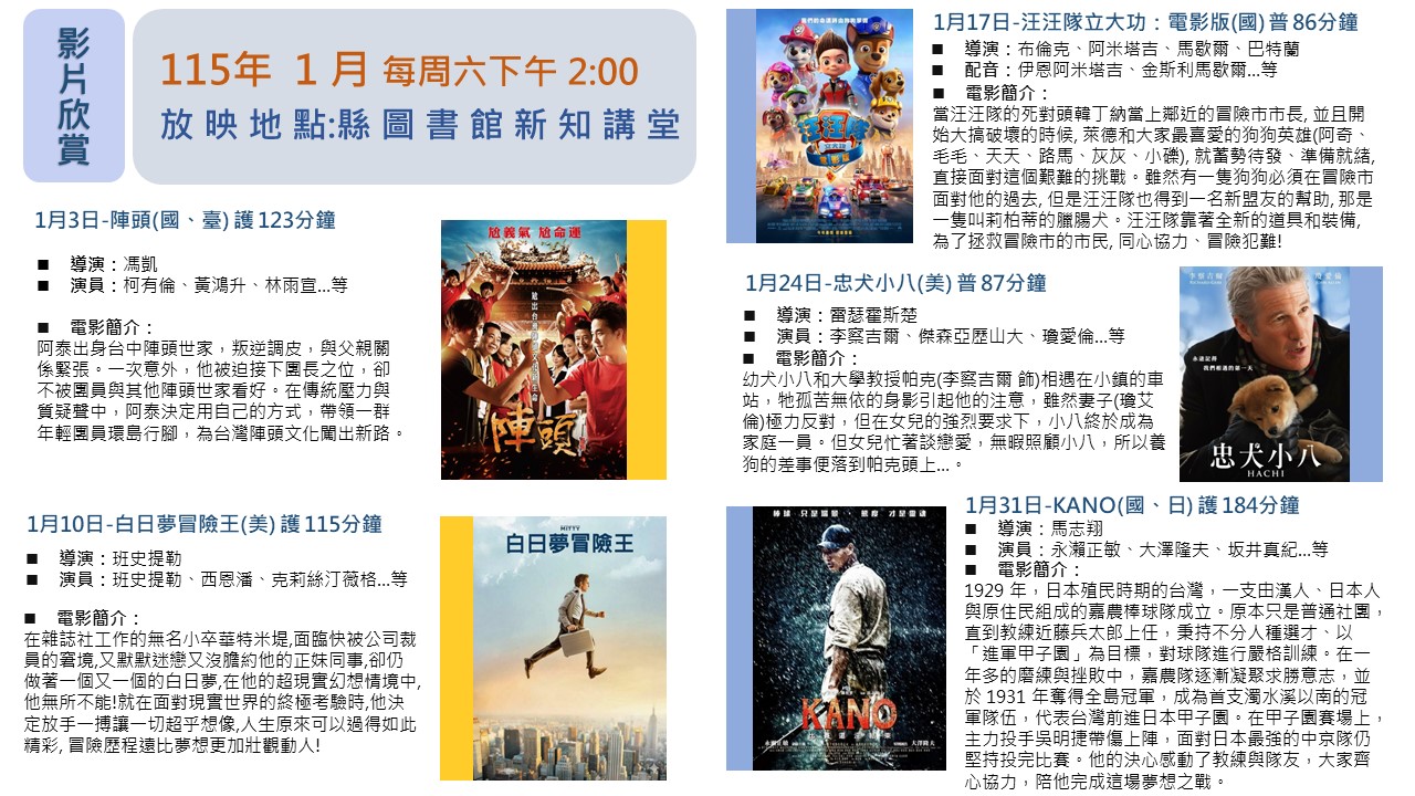 1月24日 忠犬小八(美) 普 : 93分鐘