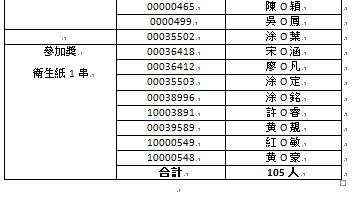 其餘參加已投入摸彩箱(共105人)之參加者,可獲得衛生紙1串